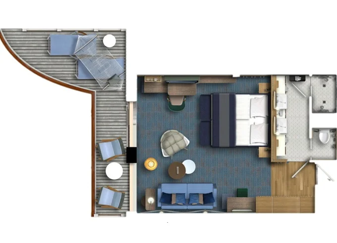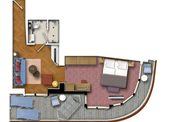 | JBAO - Junior Suite s balkónom 26 m² + balkón 7 m² so stolom. 10,11. paluba. Max 4 osoby. Výhody Junior Suite. | 4 998 € 4 998 € za osobu | ||