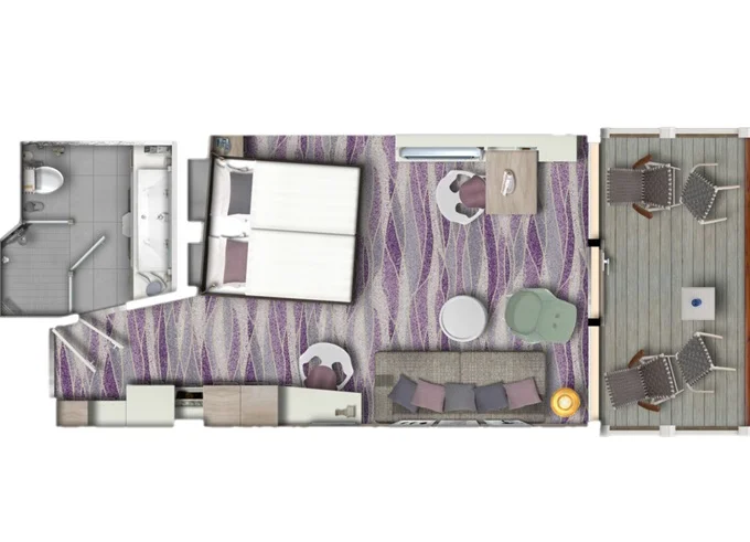 | JBAO - Junior Suite s balkónom 26 m² + balkón 7 m² so stolom. 10,11. paluba. Max 4 osoby. Výhody Junior Suite. | 4 998 € 2 499 € za osobu | ||